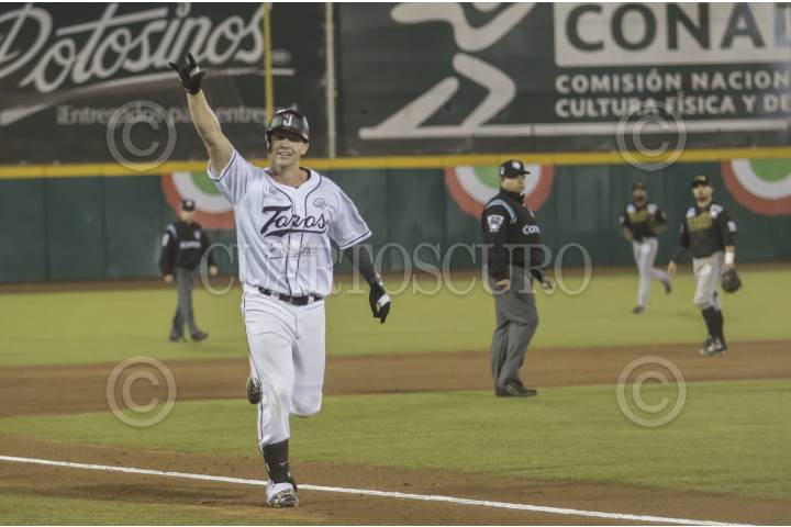 TIJUANA, BAJA CALIFORNIA, 07SEPTIEMBRE2016.- Dustin Martin celebra el cuadrangular del triunfo conectado en la novena entrada, durante el primer juego de la Serie del Rey de la Liga Mexicana de Beisbol (LMB) entre Pericos de Puebla vs Toros de Tijuana, realizado en el Estadio Gasmart. Marcador final: Puebla 0, Tijuana 1. FOTO: CHRISTIAN SERNA /CUARTOSCURO.COM