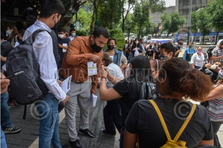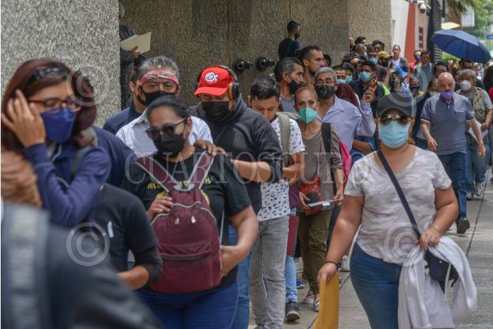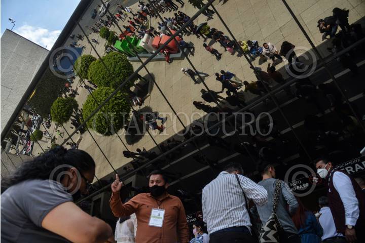 Largas filas de trabajadores se registran en el SAT de Reforma para obtener la constancia de situación fiscal luego de que a partir de mañana entre en vigor los nuevos requisitos del Comprobante Fiscal Digital por Internet (CFDI).