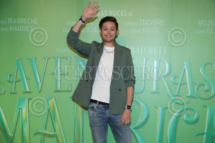 Rojstar a su paso por la alfombra verde de la película animada “Las aventuras de Maurice” en un cine al poniente de la Ciudad de México.