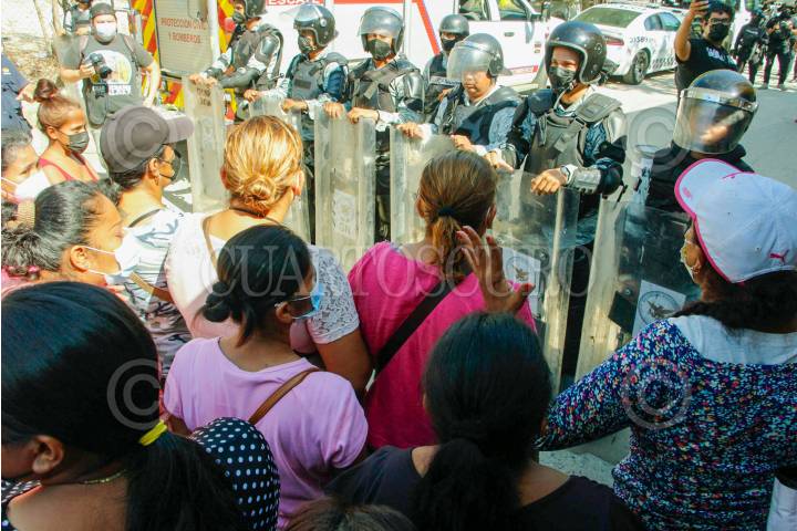 ACAPULCO, GUERRERO, 25FEBRERO2019.- Elementos de la policía estatal antimotines desalojaron alrededor de mas de 250 personas que se manifestaban en el exterior del centro de reinserción social de Acapulco ubicado en Las Cruces quienes exigían mejor trato a internos. Los manifestantes arribaron al penal de Las Cruces alrededor de las 11 de la mañana donde mostraron cartulinas lanzaron consignas contra el director del penal por el cobro de piso dentro de la penitenciaria y quemaron llantas en la entrada principal de la pluma para exigir qué terminé la corrupción en el interior de la cárcel. Los inconformes aseguraron que una banda criminal opera al interior del penal de Las Cruces que exige pago a los internos para no asesinarlos aseguraron que también se ha presentado muerte sospechosa de presos por inesperados “paros cardíacos”. FOTO: BERNANDINO HERNÁNDEZ /CUARTOSCURO.COM