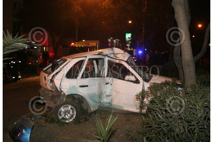MÉXICO, D.F., 16DICIEMBRE2009.- Un muerto y dos lesionados es el saldo de un choque de un automóvil Pointer contra un árbol del camellón en la lateral del Periférico Sur en la colonia Rinconada Coapa. FOTO: LUZ ACEVEDO/CUARTOSCURO.COM
