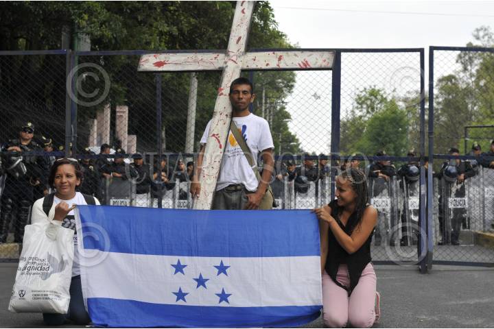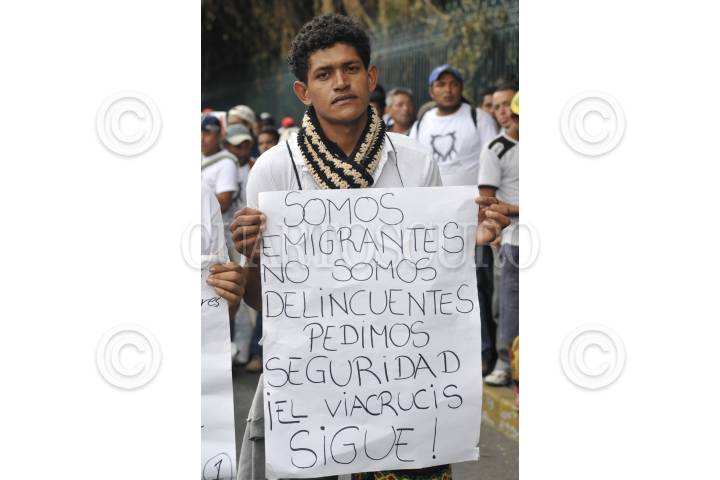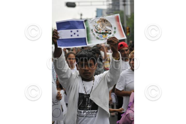 MÉXICO, D.F., 23ABRIL2014.- Cientos de migrantes centroamericanos, quienes partieron el pasado 15 de abril desde Guatemala en viacrucis, arribaron a la ciudad de México para realizar una marcha que partió del Ángel de la Independencia rumbo a Los Pinos, para buscar un dialogo con el presidente Enrique Peña Nieto. Los marcha concluyó en el cruce de calzada Chivatito y Reforma donde una comitiva buscó un dialogo con las autoridades correspondientes. Los migrantes exigían mayor seguridad durante su pasó en México rumbo a Estados Unidos pues denuncian demasiada inseguridad, extorsiones, secuestros, abuso de autoridad, entre muchas irregularidades. FOTO: DIEGO SIMÓN SÁNCHEZ /CUARTOSCURO.COM