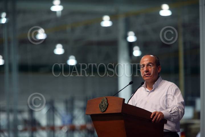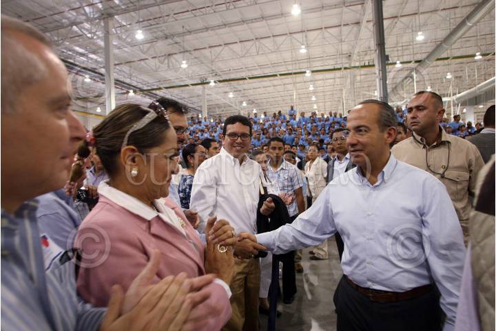 MUNICIPIO DE JUAREZ, CHIHUAHUA., 22 JULIO2008.- Felipe Calderon Presidente de México inuguró la segunda planta de lavadoras y secadoras de la marca electrolux, realizada en la planta con el mismo nombre. FOTO: ALFREDO GUERRERO/CUARTOSCURO.COM