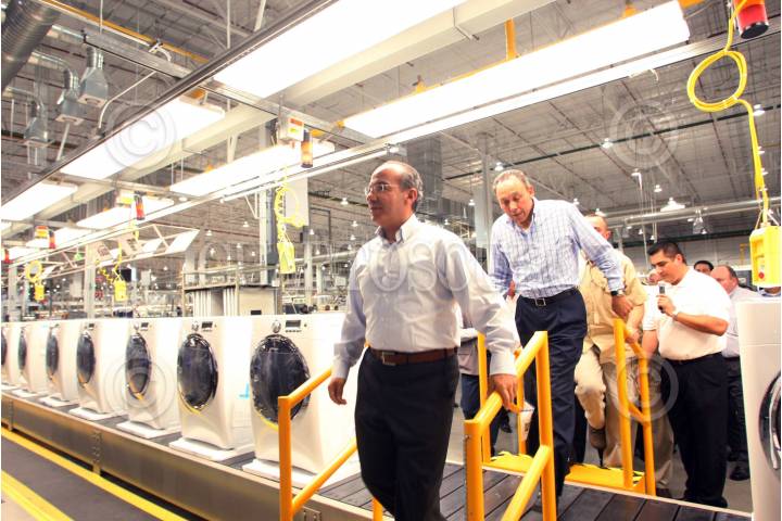 MUNICIPIO DE JUAREZ, CHIHUAHUA., 22 JULIO2008.- Felipe Calderon Presidente de México realiza un recorrido por la planta de lavadoras y secadoras electrolux. FOTO: ALFREDO GUERRERO/CUARTOSCURO.COM