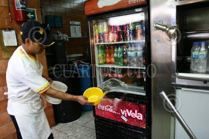MÉXICO, D.F., 05MAYO2009.- Comerciantes de la ciudad de México limpian sus locales de comida para reiniciar sus ventas a partir de mañana miércoles, luego de que permanecieron cerrados desde la semana pasada debido a la epidemia de influenza que afecta al país. FOTO: ISAAC ESQUIVEL/CUARTOSCURO.COM