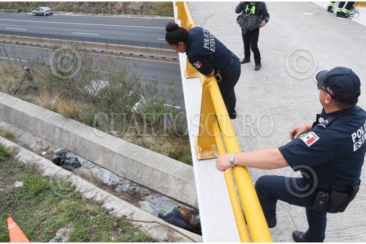 NAUCALPAN, ESTADO DE MÉXICO, 16JUNIO2019.- Hallaron a un hombre muerto, el cual presuntamente se colgó de un puente vehicular, a la altura de la autopista Chamapa-Lechería kilómetro 18+590 con dirección a Naucalpan La policía estatal señala que el pesos de su cuerpo rompió la cuerda con la que previamente se había quitado la vida, el cadáver quedo en una cuneta a las orillas de la avenida. FOTO: ARMANDO MONROY /CUARTOSCURO.COM