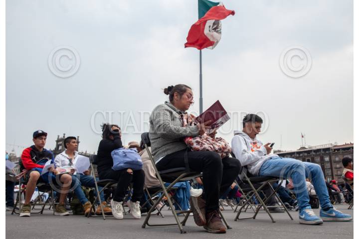 CIUDAD DE MÉXICO, 22ABRIL2025.- Clara Brugada, jefa de Gobierno de la Ciudad acompañada de personalidades del arte, encabezaron la lectura a público en general Lectodromo en la plancha del Zócalo Capitalino. FOTO: ANDREA MURCIA /CUARTOSCURO.COM