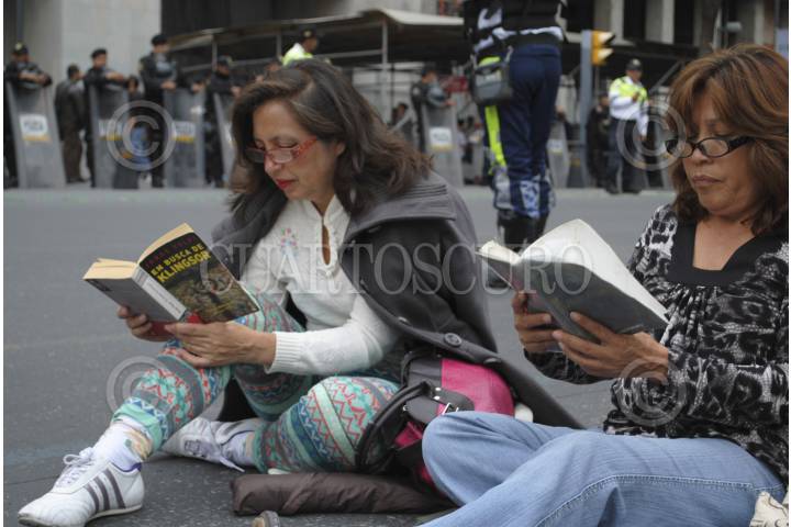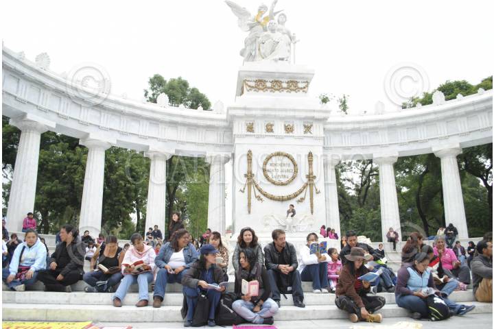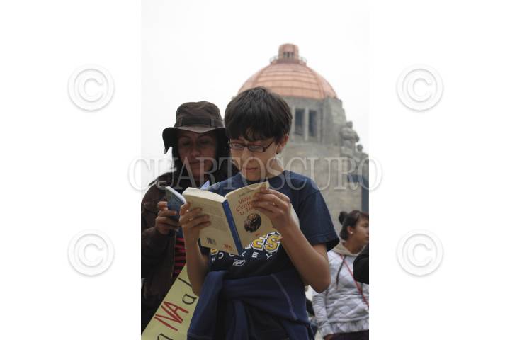 MÉXICO, D.F., 07SEPTIEMBRE2013.- Alumnos, padres de familia y docentes asistieron al Monumento a la Revolución al “Sentón de Lectura” convocado por los profesores de la CNTE para protestar por la Reforma Educativa. Después de realizar recomendaciones de libros y lectura en voz alta, se trasladaron al hemiciclo a Juárez para continuar la actividad. FOTO: MITZI BLANQUET /CUARTOSCURO.COM