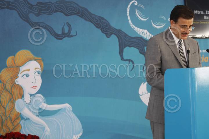 GUADALAJARA, JALISCO, 23ABRIL2015.-Tonatihu Bravo Padilla, Rector General de la Universidad de Guadalajara (UdeG), durante su participación en la lectura en voz alta del libro Alicia en el País de la Maravillas del escritor Lewis Carroll, que se llevo a cabo en la Rambla Cataluña, en el Marco del Día Mundial del Libro. FOTO: FERNANDO CARRANZA GARCIA / CUARTOSCURO.COM
