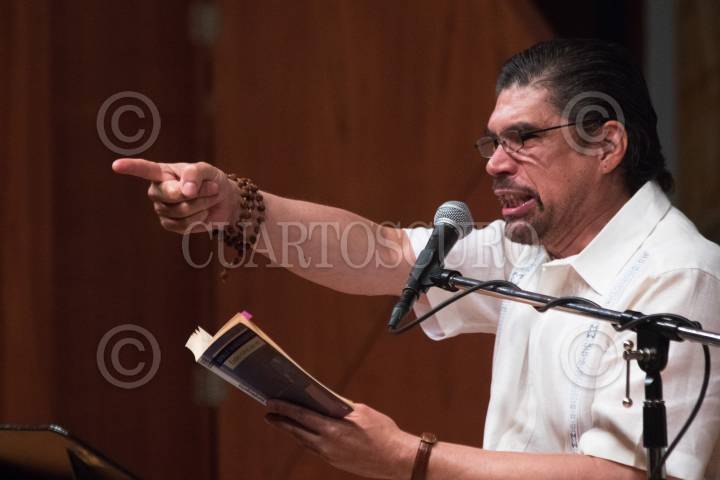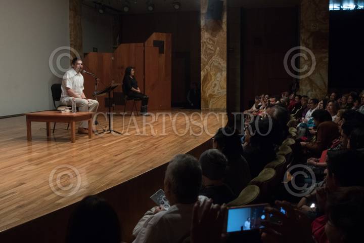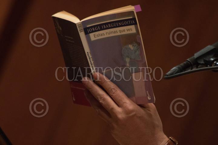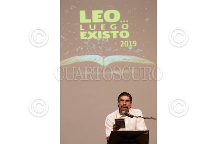 CIUDAD DE MÉXICO, 27ENERO2019.- El actor Alberto Estrella leyó obras de Jorge Ibargüengoitia, como "Estas ruinas que ves", en el marco del ciclo de lecturas "Leo Luego Existo", que se realizan los domingos en la sala Manuel M. Ponce del Palacio de Bellas Artes. FOTO: MOISÉS PABLO /CUARTOSCURO.COM
