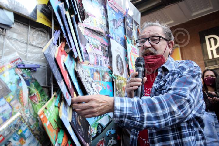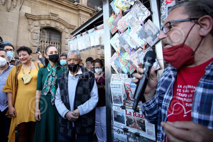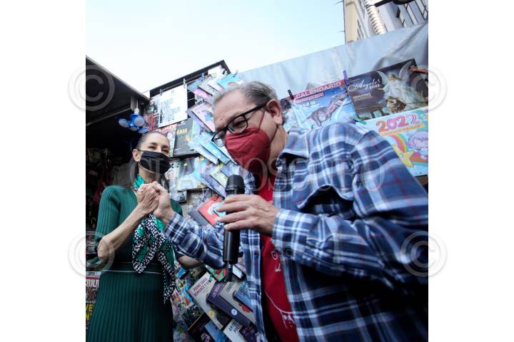 Claudia Sheinbaum, Jefa de Gobierno, y Paco Ignacio Taibo II, director del FCE, recorrieron varios quioscos de periódicos en donde se distribuyen ejemplares de la colección "Vientos del Pueblo".