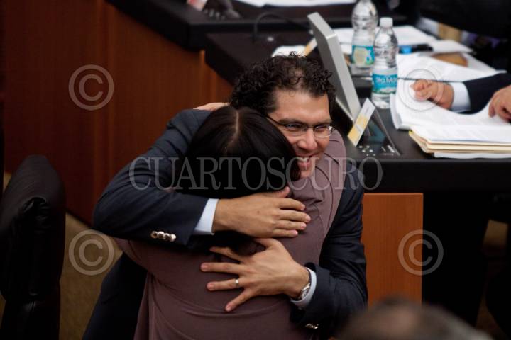 MÉXICO, D.F., 01JUNIO2011.- El coordinador de los diputados federales perredista Armando Ríos Piter, celebró la declaratoria de validez de las reformas constitucionales en materia de derechos humanos, en la sesión de la de Comisión Permanente en el Senado de la República. FOTO: MOISÉS PABLO/CUARTOSCURO.COM