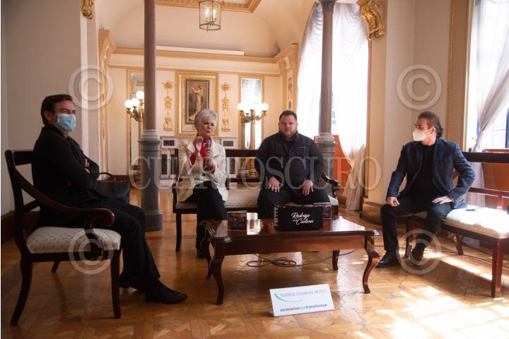 Felicia Garza, artista musical; Rodrigo de la Cadena, cantante; y Jesús Monarrez, compositor y cantante; anunciaron el espectáculo en homenaje al 50 aniversario del Festival de la Organización de la Televisión Iberoamericana (OTI), que se realizará en el Teatro Esperanza Iris el próximo 20 de febrero.