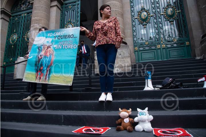 Integrantes del movimiento antitaurino, se manifestaron en las escalinatas del Congreso de la Ciudad de México para exigir se legisle para prohibir las corridas de toros.