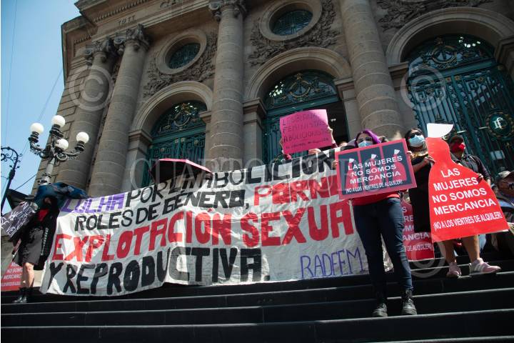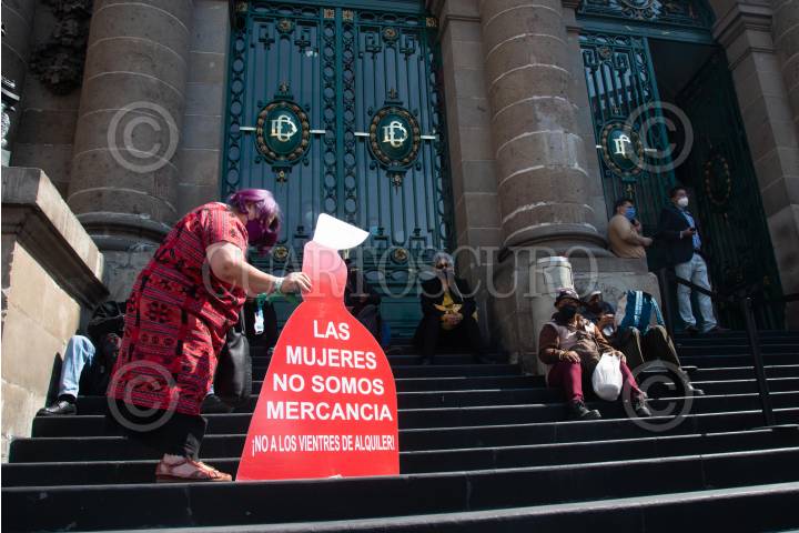 Colectivos feministas se manifestaron al exterior del Congreso de la Ciudad de México para expresar su rechazo a las iniciativas que buscan reconocer la maternidad subrogada como derecho y regularla como práctica médica sin fines de lucro.