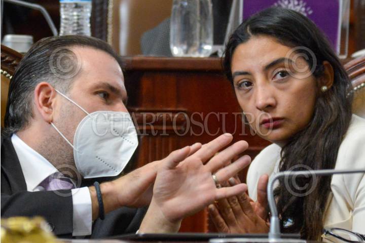 Cristian Damián Von Roehrich, diputado del PAN platica con su compañera de bancada Ana Villagran, durante la sesión ordinaria del Congreso de la Ciudad de México.