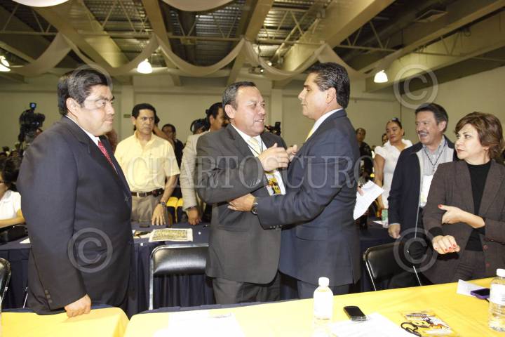 MÉXICO, D.F., 17AGOSTO2012.- Los legisladores electos y coordinadores de las bancadas del PRD, Miguel Barbosa, en el Senado, y Silvano Aureoles, en Diputados, saludan a Jesús Zambrano, presidente Nacional de su Partido, durante su 2o pleno del Consejo Nacional. FOTO: CUARTOSCURO.COM