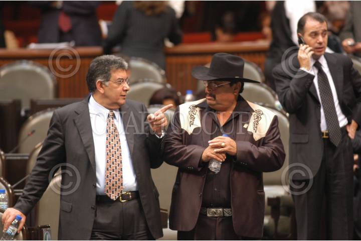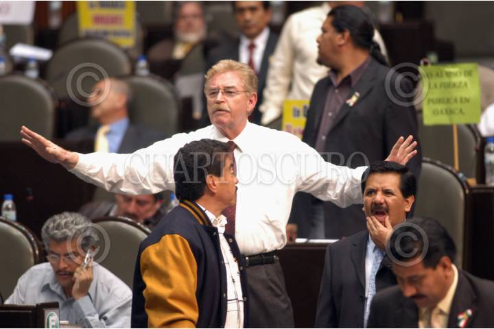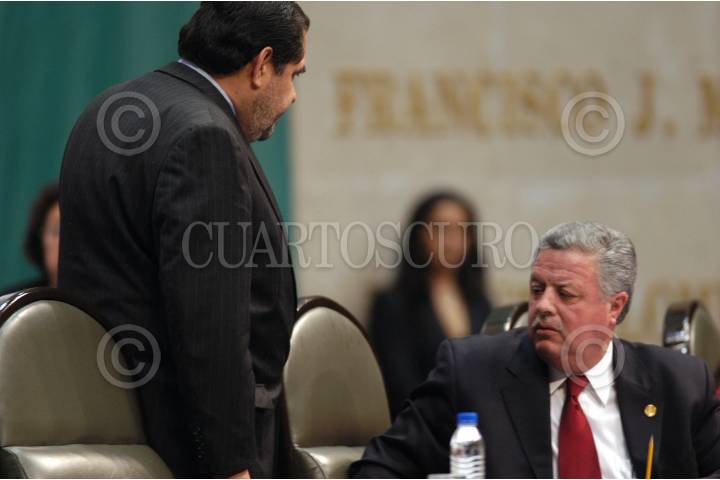MÉXICO, D.F., 29SEPTIEMBRE2006.- Los diputados José Murat y Andrés Bermúdez, durante la sesión en el Congreso de la Unión, en que los legisladores del PRD se manifestaron en contra de la forma como se repartieron las comisiones. FOTO: GUILLERMO PEREA/CUARTOSCURO.COM