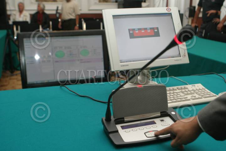 MÉXICO, D.F. 12ABRIL2007.- Diputados de la comisión de administracion de la Asamblea Legislativa del D.F., muestra el nuevo sistema electronico de votacion que pretenden instalar en el recinto legislativo. FOTO: SAÚL LÓPEZ/CUARTOSCURO.COM