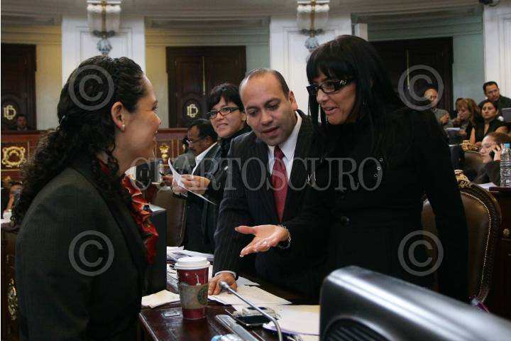 MÉXICO D.F., 17DICIEMBRE2009.- Marina Gómez del Campo, Legisladora del PAN, dialoga con Julio César Moreno y Alejandra Barrales, legisladores del PRD, durante la sesión en la Asamblea Legislativas del Distrito Federal. FOTO: GUILLERMO PEREA/CUARTOSCURO.COM