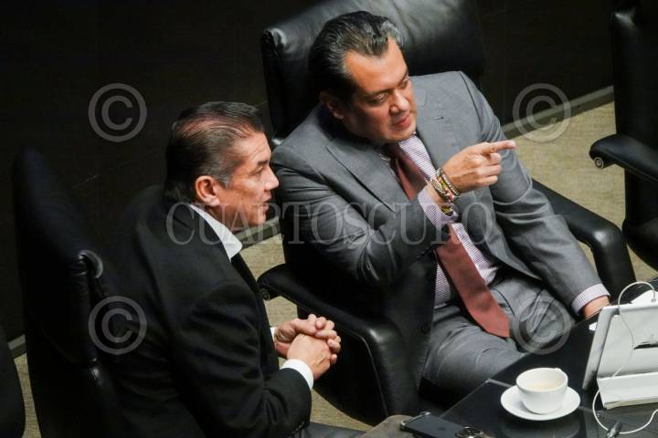 CIUDAD DE MÉXICO, 20JUNIO2025.- Carlos Puente Salas, coordinador del PVEM en la Cámara de Diputados, conversa con Sergio Gutiérrez Luna, presidente de la Cámara de Diputados, durante la sesión de la Comisión Permanente en la Cámara de Senadores. FOTO: GALO CAÑAS/CUARTOSCURO.COM