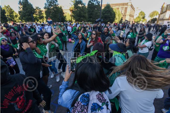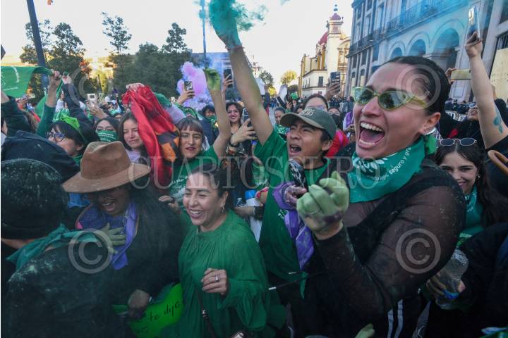 TOLUCA, ESTADO DE MÉXICO, 25NOVIEMBRE2024.- La Marea Verde celebra con cantos y baile la Despenalización del Aborto en el Estado de México, que fue aprobado este día en sesión de la LXII Legislatura local, convirtiéndose en la entidad número 18 en hacerlo. FOTO: CRISANTA ESPINOSA AGUILAR /CUARTOSCURO.COM