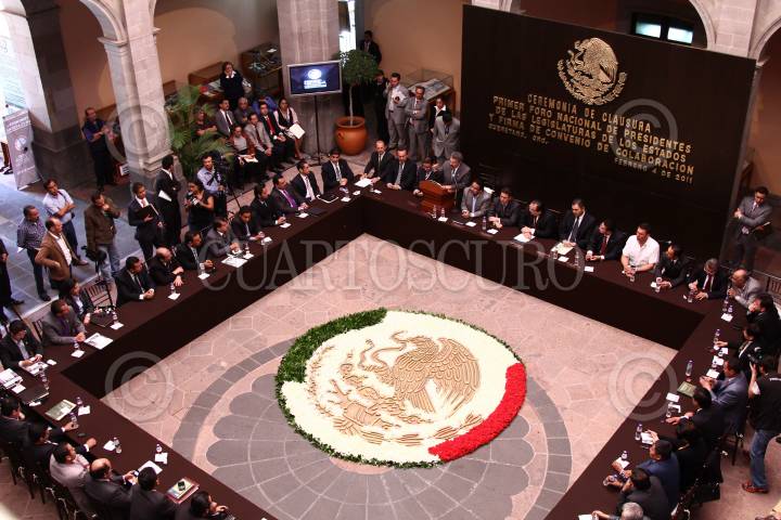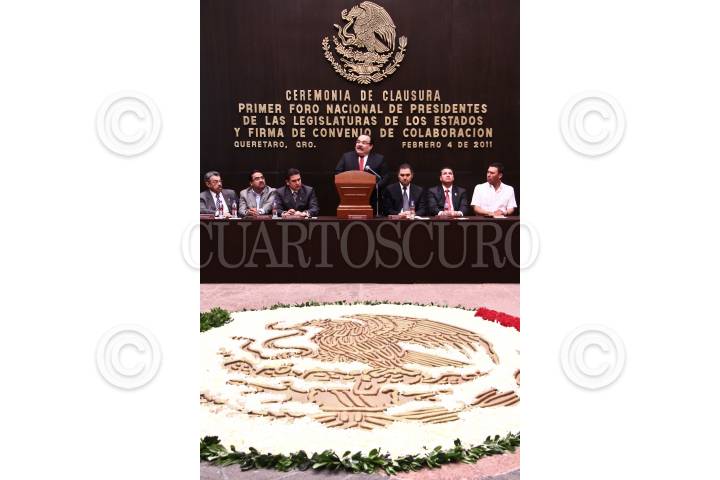 QUERÉTARO, QUERÉTARO, 04FEBRERO2011.- Aspecto general de la Clausura del Primer Foro Nacional de Presidentes de las Legislaturas de los Estados y de la Firma del Convenio de Colaboración entre estas instituciones del Estado. Esto se realizó en el Archivo Histórico del Estado. FOTO: MISAEL VALTIERRA/CUARTOSCURO.COM