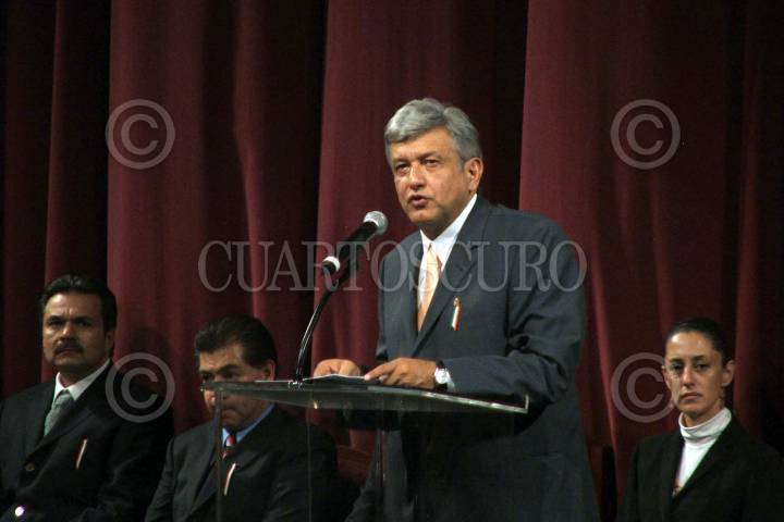 MEXICO D.F. 03NIVIEMBRE2006.- El ex candidato presidencial de la coalición por el Bien de Todos Andrés Manuel López Obrador, presentó a su “gabinete” que lo acompañará durante los próximo seis años en la denominada “presidencia legítima” esto en el Teatro de la Ciudad. FOTO: GUILLERMO PEREA/CUARTOSCURO.COM