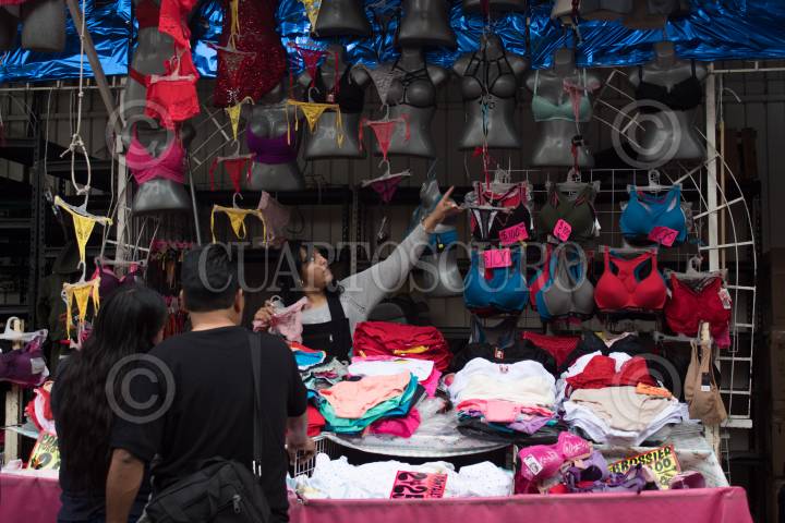 CIUDAD DE MÉXICO, 24OCTUBRE2019.- En la calle de Donceles del Centro Histórico un comercio oferta lencería. FOTO: MOISÉS PABLO /CUARTOSCURO.COM