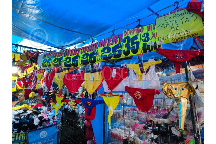 La ropa interior de color rojo y amarillo son parte de los rituales para recibir el Año Nuevo, pedir abundancia en amor y dinero, negocia de la capital mexiquense ofrecen estas prenderas para hombres y mujeres.