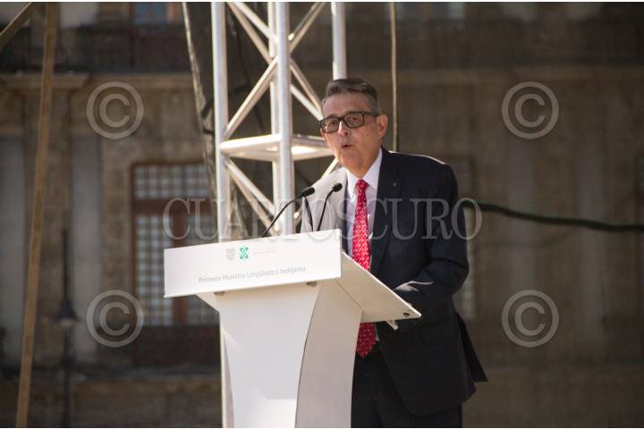 CIUDAD DE MÉXICO, 21FEBRERO2019.- Alfonso Suárez del Real, titular de Cultura del Gobierno Capitalino, encabezó la "Primera Muestra de Lingüística Indígena, Ciudad de México", que se realiza en el Zócalo. FOTO: VICTORIA VALTIERRA /CUARTOSCURO.COM