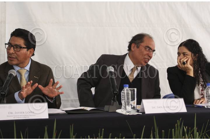CIUDAD DE MÉXICO, 16FEBRERO2016.- Saúl López, representante de la Secretaría de Cultura, Alejandra Fraustro, directora general de Culturas Populares, Javier López, director del Instituto de Lenguas Indígenas, presentaron ante medios de comunicación el Premio Nezahualcóyotl de Literatura en Lenguas Indígenas en el marco de la celebración del Día Internacional de la Lengua Materna. El lanzamiento de la decimocuarta emisión del premio de literatura se realizará del 21 al 23 de febrero de este. FOTO: MARÍA JOSÉ MARTÍNEZ /CUARTOSCURO.COM