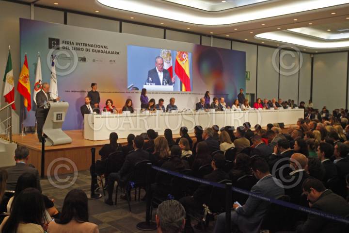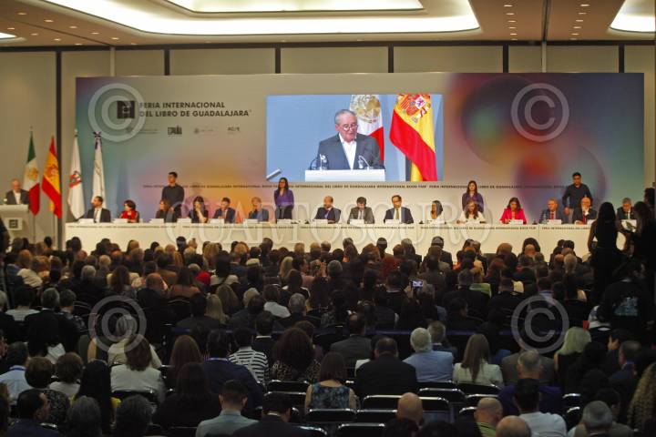 GUADALAJARA, JALISCO. 29NOVIEMBRE2024.- Hoy en las instalaciones de la Expo Guadalajara se llevo a cabo la ceremonia de inauguración de la edición 38 de la Feria Internacional del Libro De Guadalajara (FIL), en la que se hizo entrega el Premio FIL de Literatura en Lenguas Romances al escritor Mozambiqueño Mia Couto, y en donde el País Invitado de Honor es España. FOTO: FERNANDO CARRANZA GARCIA / CUARTOSCURO.COM