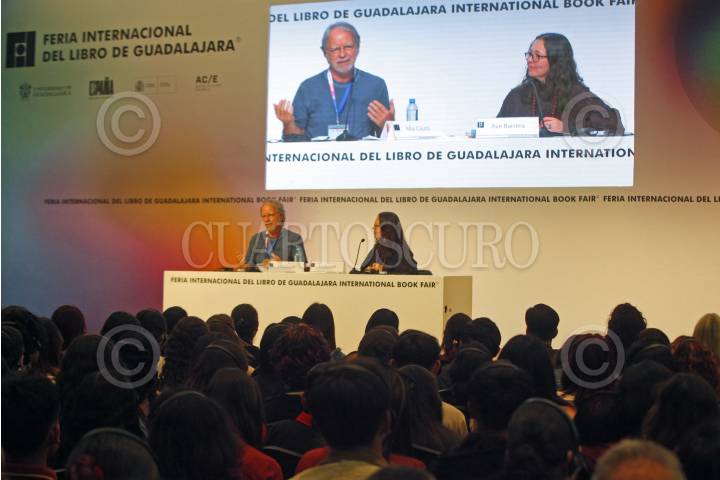 GUADALAJARA, JALISCO. 01DICIEMBRE2024.- Mil Jóvenes con Mia Couto, evento donde el ganador del premio Fil de Literatura en Lenguas Romances charlo e interactuó con jóvenes asistentes a la FIL esto en el marco de la edición 38 de la Feria Internacional del Libro De Guadalajara (FIL), que se lleva a cabo en las instalaciones de la Expo Guadalajara y en donde el País Invitado de Honor es España. FOTO: FERNANDO CARRANZA GARCIA / CUARTOSCURO.COM