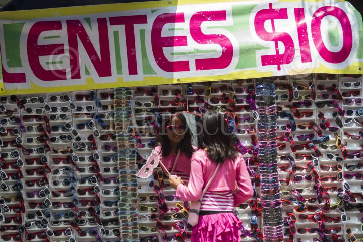 MÉXICO, D.F., 10JULIO2015.- Una niña se prueba unos lentes de diez pesos en Chapultepec, hoy es el último día de clases en el calendario escolar. FOTO: MOISÉS PABLO /CUARTOSCURO.COM