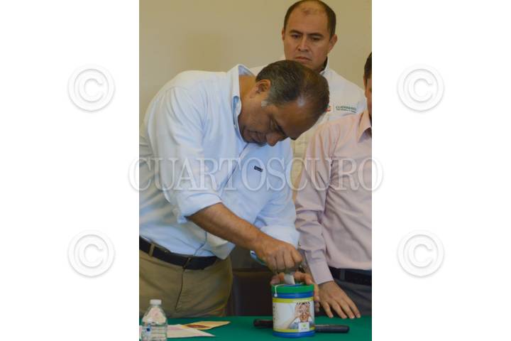 CHILPANCINGO, GUERRERO, 14MARZO2016.- El gobernador Héctor Astudillo dio el banderazo de inició de la colecta "Ver bien para Aprender Mejor", programa que busca beneficiar a estudiantes de bajo recurso económicos, a través de exámenes de optometría y la donación de lentes. Durante la puesta en marcha de la colecta lo acompañaron; Sergio Rodríguez Marmolejo , delegado de la SEP en Guerrero, y de José Luis González de la Vega, secretario de Educación. FOTO: JOSÉ I. HERNÁNDEZ / CUARTOSCURO.COM