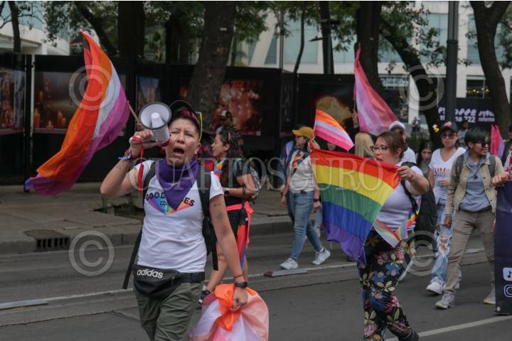 CIUDAD DE MÉXICO, 22JUNIO2024.- Una mujer grita en su altavoz durante la Marcha Lencha que se realizó desde el Ángel de la Independencia hasta el Monumento a la Revolución. FOTO: ALICE MORITZ/CUARTOSCURO.COM