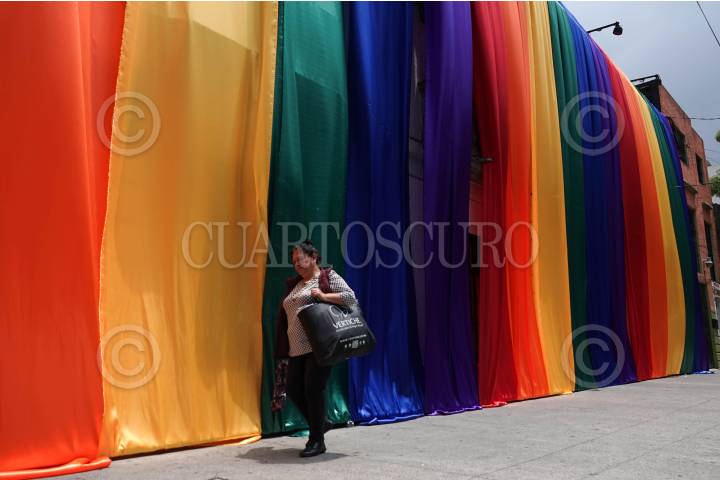 CIUDAD DE MÉXICO, 17MAYO2025.- Cruce peatonal "arcoiris" en el marco por el Día Internacional contra la Homofobia, Lesbofobia, Bifobia y Transfobia, en Avenida Juárez y Luis Moya, en el Centro Histórico. FOTO: MAGDALENA MONTIEL/CUARTOSCURO.COM