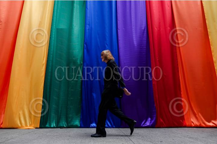 CIUDAD DE MÉXICO, 27JUNIO2024.- En la esquina de las calles Coahuila y Jalapa, una bandera monumental alusiva a la población LGBTTTIQPA+ en el marco del mes del orgullo. FOTO: GALO CAÑAS/CUARTOSCURO.COM