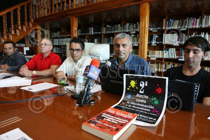 VILLAHERMOSA, TABASCO, 10MAYO2011.- Integrantes de distintas organizaciones y fundaciones lesbios gay ofrecieron un comunicado a la prensa local, donde dan a conocer que empresas como Pemex realizan pruebas de VIH al personal sin el consentimiento del trabajador. Así mismo informo José Luis Cruz de la agrupación TUDISSEX detalla que lo que realiza Petróleos Mexicanos en Tabasco es una completa discriminación homofobica. FOTO: MARCO POLO GUZMÁN HERNÁNDEZ/CUARTOSCURO.COM