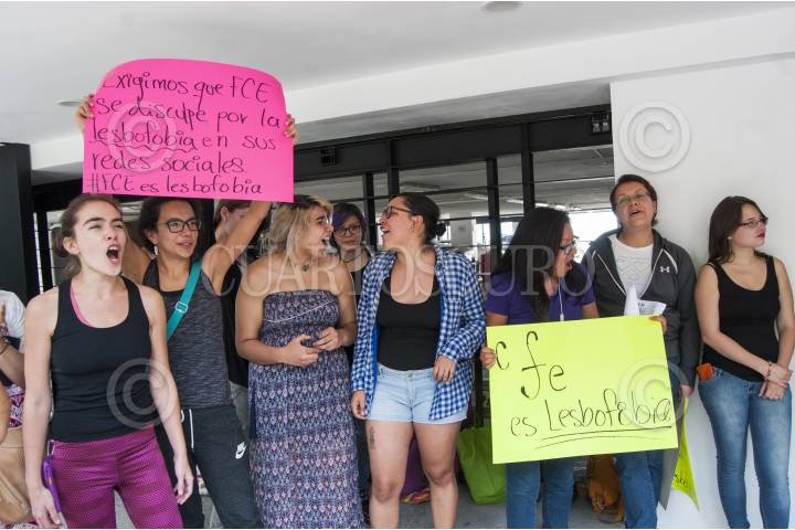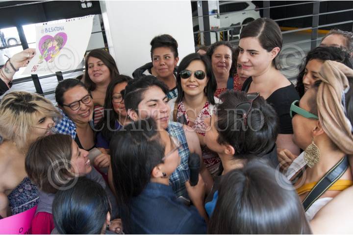 CIUDAD DE MÉXICO 27MAYO2016.- Un grupo de mujeres lesbianas se concentraron afuera de la librería del Fondo de Cultura Económica, sobre avenida Miguel Ángel de Quevedo, ya que en días pasados, un guardia de seguridad corrió a una pareja de mujeres que se estaban besando en la entrada de la tienda. Las chicas exigieron una disculpa pública por parte de la librería, y un alto a la "lesbofobia" que han sufrido en otras ocasiones, tanto en la calle como en las redes sociales. FOTO: DIEGO SIMÓN SÁNCHEZ /CUARTOSCURO.COM