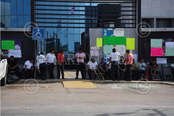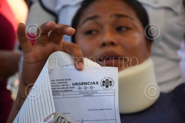 CAMPECHE, CAMPECHE, 21MARZO2024.- Policías Estatales de Campeche mantienen su protesta por sexto día consecutivo, Angélica Hernández y Diana Vázquez, integrantes de Mujer Valiente de la Policía Estatal, son dos de los más de 30 policías lesionados el 15 de marzo en el penal de Kobén. A pesar de sus lesiones, hoy se presentaron para denunciar que fueron llevadas sin que les dieran conocimiento alguno a que iban al penal, indicaron que fueron despojadas de todas sus pertenencias, pero que además fueron trasladadas al penal de kobén sin equipamiento, exigieron el respaldo de las autoridades y la cese de la Secretaria de Seguridad Marcela Muñoz. FOTO: MICHAEL BALAM/CUARTOSCURO.COM