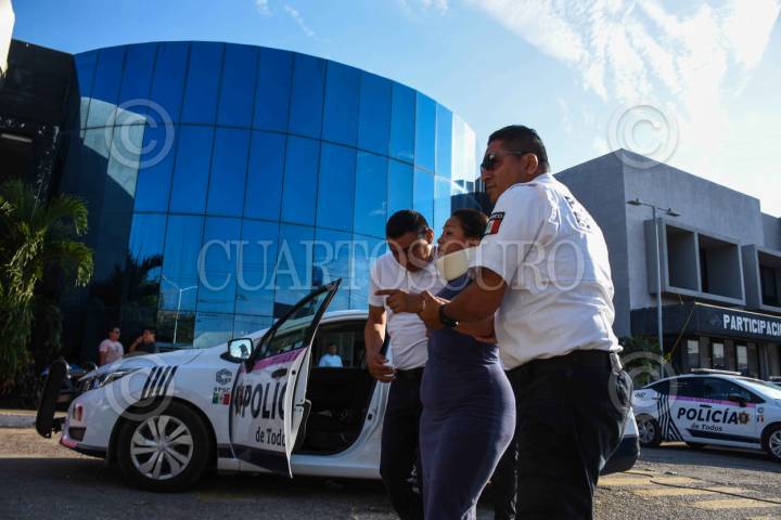 TAPACHULA, CHIAPAS, 22DICIEMBRE2024.- Un percance vial entre una patrulla de la Fuerza de Reacción Inmediata Pakal (FRIP) y un colectivo de la ruta Palmeras dejó como saldo tres pasajeros lesionados y un elemento policiaco herido. Este es el segundo incidente del día en el que se ve involucrada una unidad de la FRIP. FOTO: DAMIÁN SÁNCHEZ/CUARTOSCURO.COM