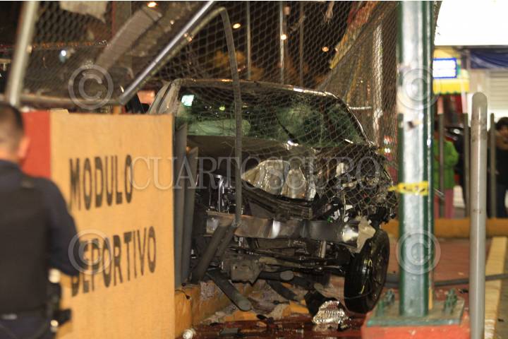 CIUDAD DE MÉXICO., 07NOVIEMBRE2019.- Dos hombres lesionados, dejó como saldo el choque de un automóvil particular, al impactar contra módulo deportivo, en la esquina de Sur 20 y Javier Rojo Gómez en la colonia Agrícola Oriental. FOTO: LUIS CARBAYO /CUARTOSCURO.COM