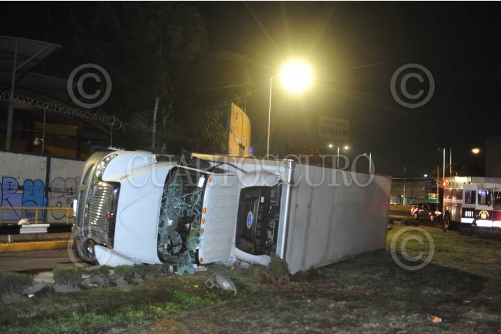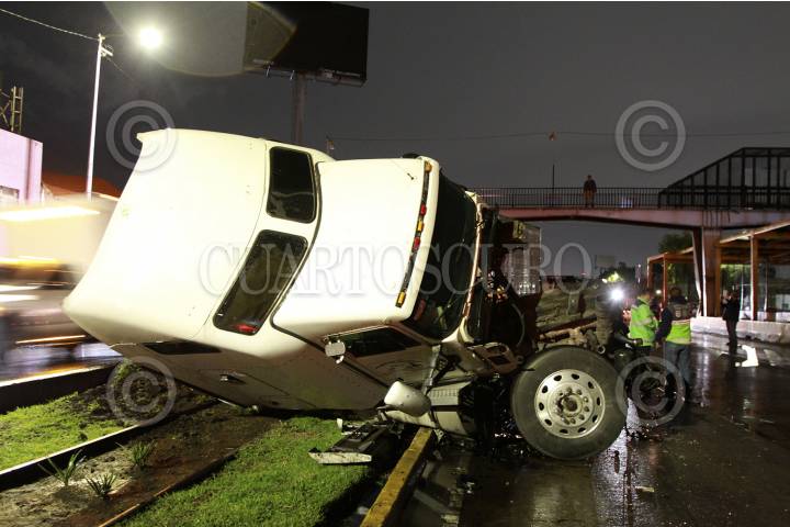 Trailero volcó la cabina de su camión, al conducir con exceso de velocidad y perder el control impactando contra la base de un puente peatonal en la alcaldía de Gustavo A. Madero. El conductor quedo a disposición de las autoridades de esa localidad.