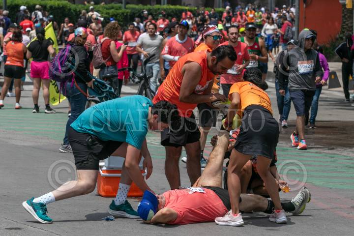 CIUDAD DE MÉXICO, 25AGOSTO2024.- Acalambrados, deshidratados o con dolor de rodillas fue como terminaron cientos de corredores que participaron Maratón de la Ciudad de México 2024, cuyo recorrido partió de Ciudad Universitaria y concluyó en el Zócalo. FOTO: MOISÉS PABLO/CUARTOSCURO.COM