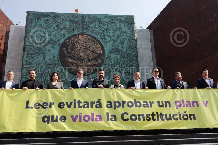 Diputados del Grupo Parlamentario de Movimiento Ciudadano, protestan en contra de las leyes secundarias de la Reforma Electoral que siguen a discusión en el Congreso.