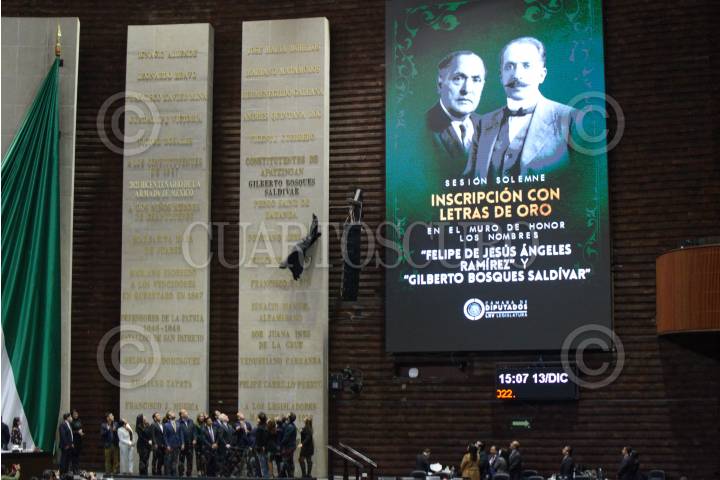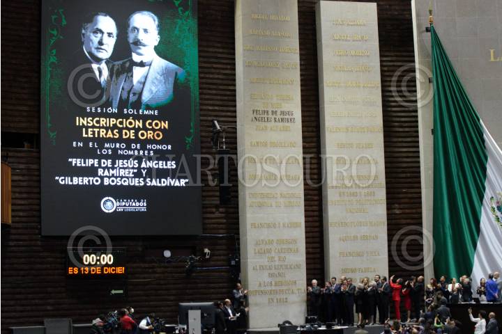 Sesión solemne de la Cámara Diputados en la que se realizó el acto formal de develación de las Letras de Oro de: Felipe Ángeles y Gilberto Bosques, en el Muro de Honor del Salón de Sesiones.
