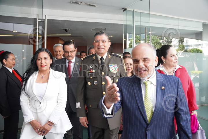 CIUDAD DE MÉXICO, 15NOVIEMBRE2023.- Ana Lilia Rivera, senadora de Morena; Luis Cresencio, secretario de la Defensa Nacional, y Manuel Añorve, senador del PRI, durante su llegada encabezaron la develación de inscripciones con letras doradas en el Muro de Honor por el "2023, Año del bicentenario del Heroico Colegio Militar" en el muro de honor durante la sesión plenaria de la Cámara de Senadores. FOTO: CUARTOSCURO.COM