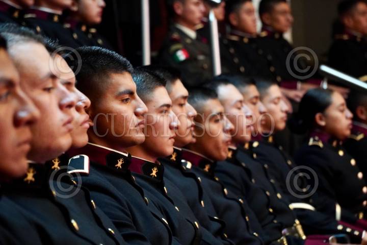 CIUDAD DE MÉXICO, 15NOVIEMBRE2023.- Cadetes del Heroico Colegio Militar, observan la develación de inscripciones con letras doradas en el Muro de Honor por el "2023, Año del bicentenario del Heroico Colegio Militar" en el muro de honor durante la sesión plenaria de la Cámara de Senadores. FOTO: CUARTOSCURO.COM